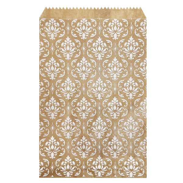 #EN-9706-WH White Damask Kraft Gift Bags 5"WX7"H