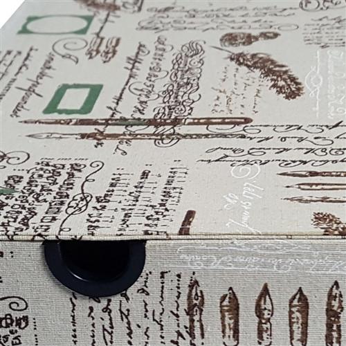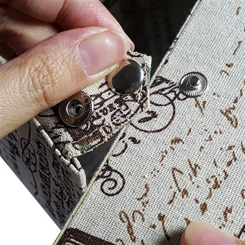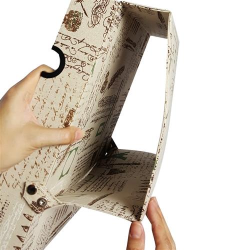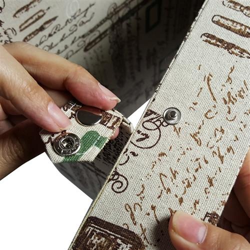 Parisian print fabric covered eyewear storage and display case for 12 large frames with snap closure. The snaps allow the cover to folded back to prop up the tray as a display.Unit: Each